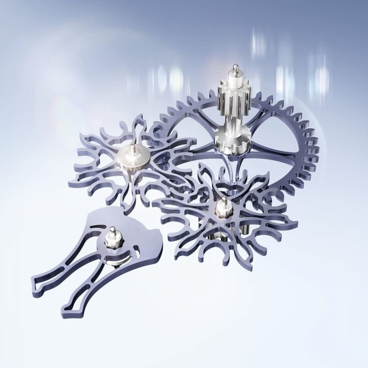 The Calibre 7135 features a newly designed Dynapulse escapement with a rolling transmission mechanism. It replaces the traditional lever escapement with a silicon-based intermediate wheel, offering higher efficiency, reduced wear, and exceptional magnetic resistance. The escapement’s components are skeletonized to reduce inertia, allowing smoother interaction between the gears and pallet fork. Ultra-precise lubrication, measured in nanoliters, ensures optimal oil distribution.