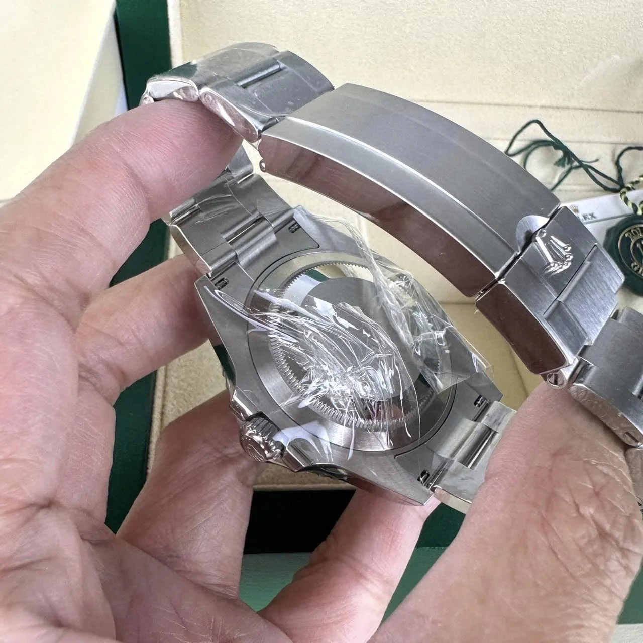 | BRACELET | – Oyster design, flat three-piece links – Made with Solid 904L Grade Stainless Steel with DLC scratch-protection coating – Solid threaded screws, so you can easily remove bracelet links with just a small screwdriver – Folding OysterLock Safety Clasp with Rolex Glidelock extension system, exactly as Original |